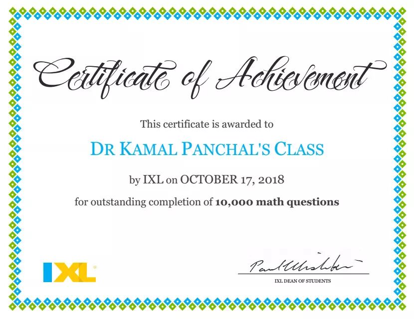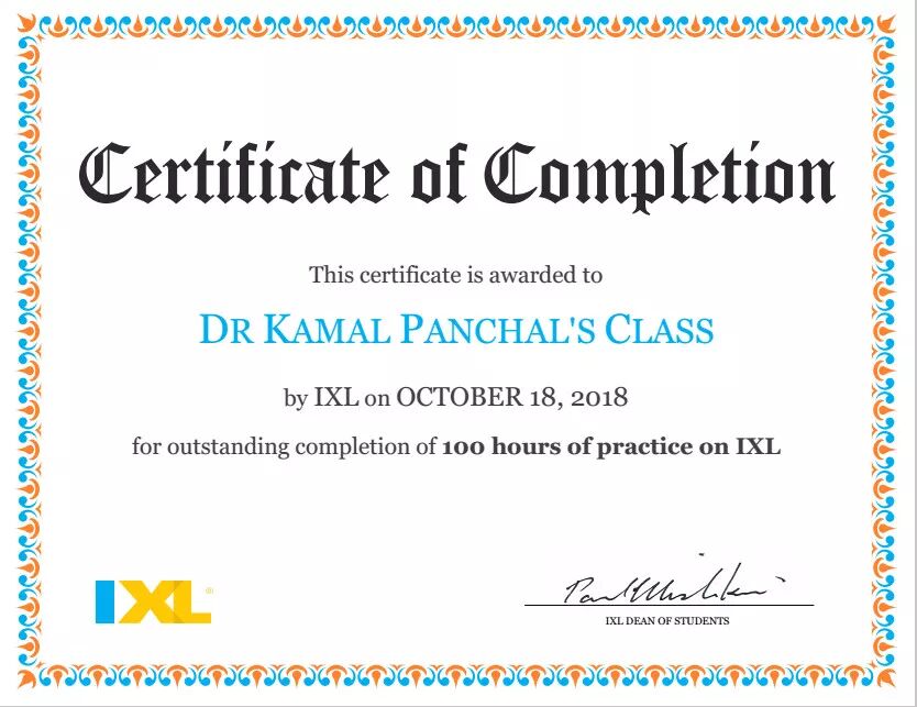 Dr.Kamal利用IXL的智能化出题特点,让我们的同学进行IXL线上答题练习,通过平台练习不断地提升自己,知道自己的不足点,一步步的加强与提高。IXL的练习题生动多彩,新颖有趣,不同于传统枯燥的数学练习,大大提升了同学们的积极性,并获得IXL.com颁发的优秀表现奖,这是对同学们的一种肯定与鼓励,他们是才人,代表着新时代的新力量,新动力!